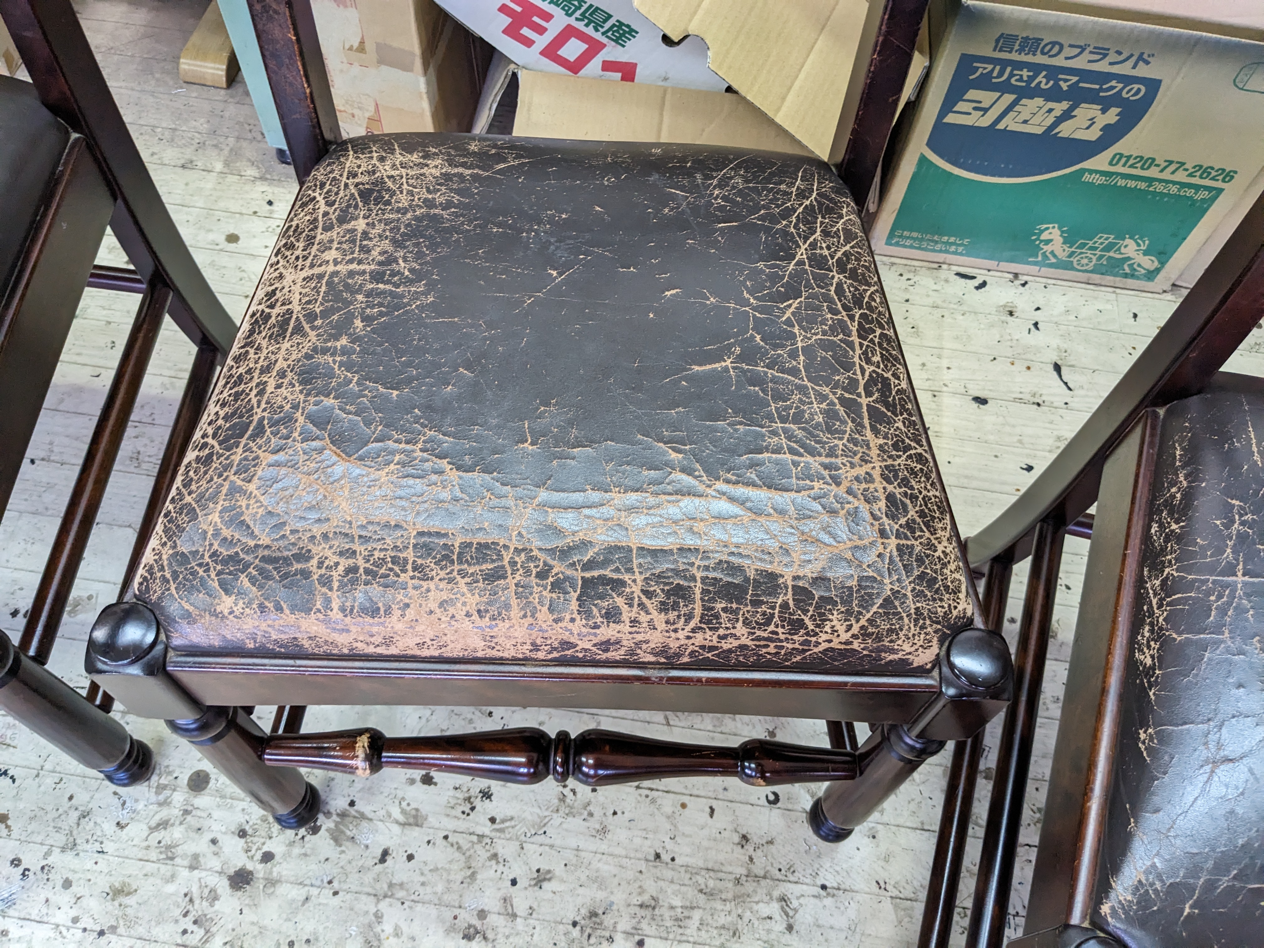 アンティークチェアの座面ひび割れによる張り替え修理のご依頼です!